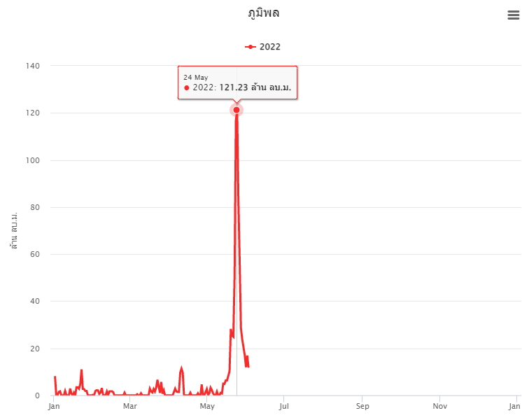 inflow water of 121.23 mcm in just one day on 24 May 2022, and Vajiralongkorn Dam also had a lot of inflow water in just one day on 22 May 2022 with 126.49 mcm.