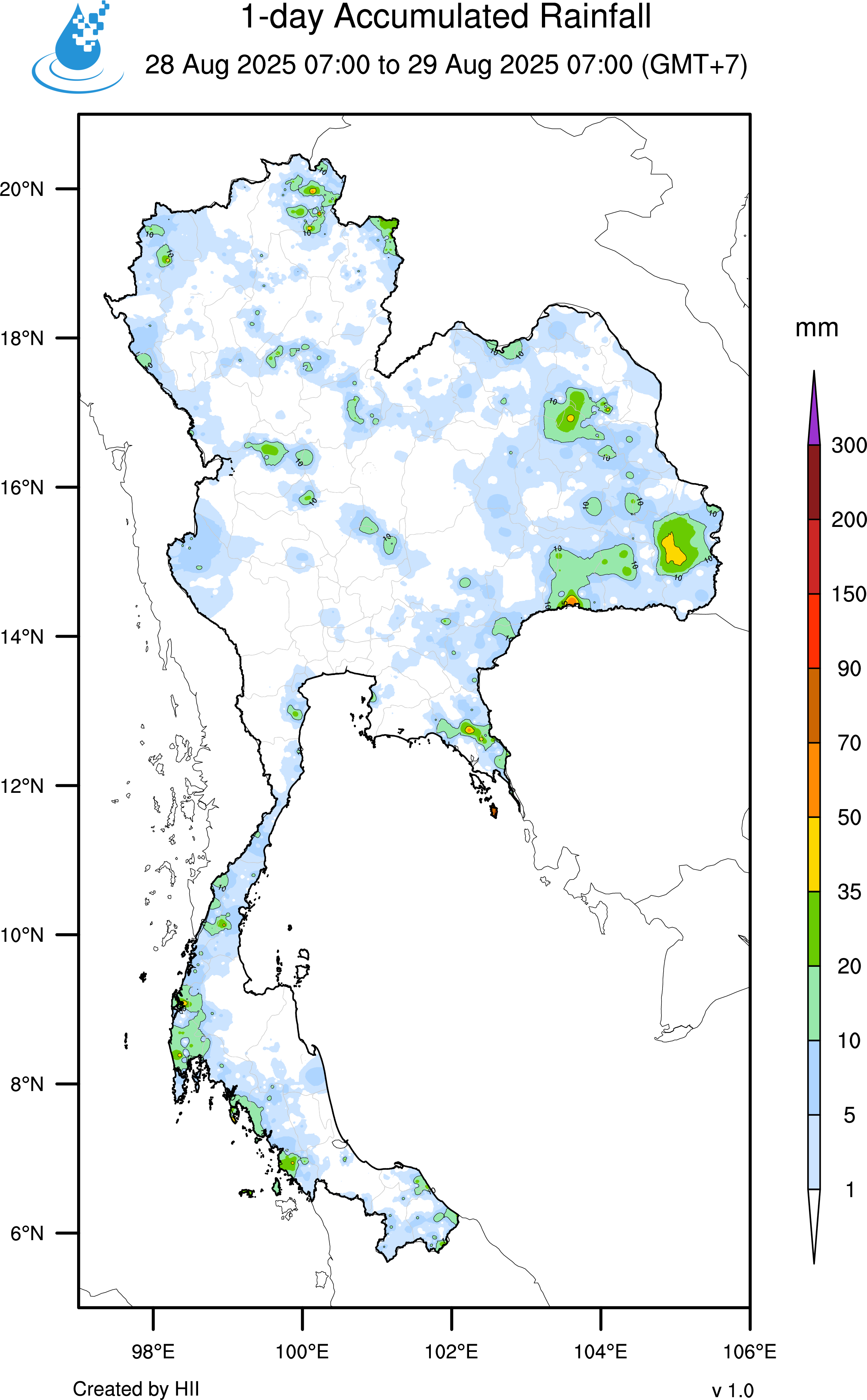 | 21/08/2025 | ชัยภูมิ | ในเมือง | เมืองชัยภูมิ | ชัยภูมิ | กรมอุตุนิยมวิทยา | 104.90 |