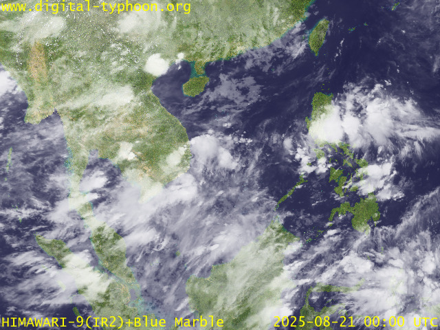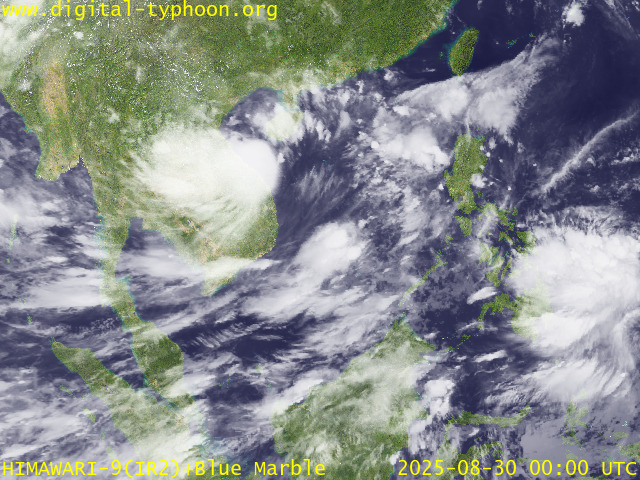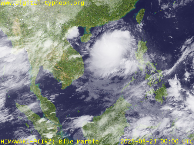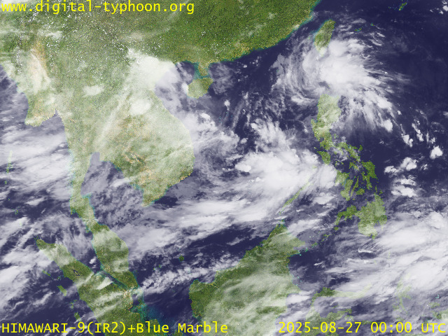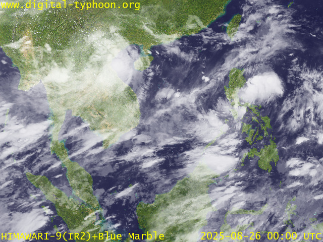 อิทธิพลของพายุไต้ฝุ่น “คาจิกิ” ส่งผลทำให้มีกลุ่มเมฆหนาขนาดใหญ่ปกคลุมบริเวณทะเลจีนใต้เป็นบริเวณกว้าง โดยเฉพาะในวันที่ 23 สิงหาคม 2568 หลังจากนั้นกลุ่มเมฆหนาได้เคลื่อนไปทางทิศตะวันตกเข้าปกคลุมบริเวณเกาะไหหลำ อ่าวตังเกี๋ย ประเทศเวียดนาม ประเทศลาว และไทย ในช่วงวันที่ 24-26 สิงหาคม 2568 หลังจาก