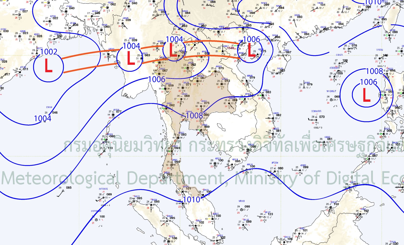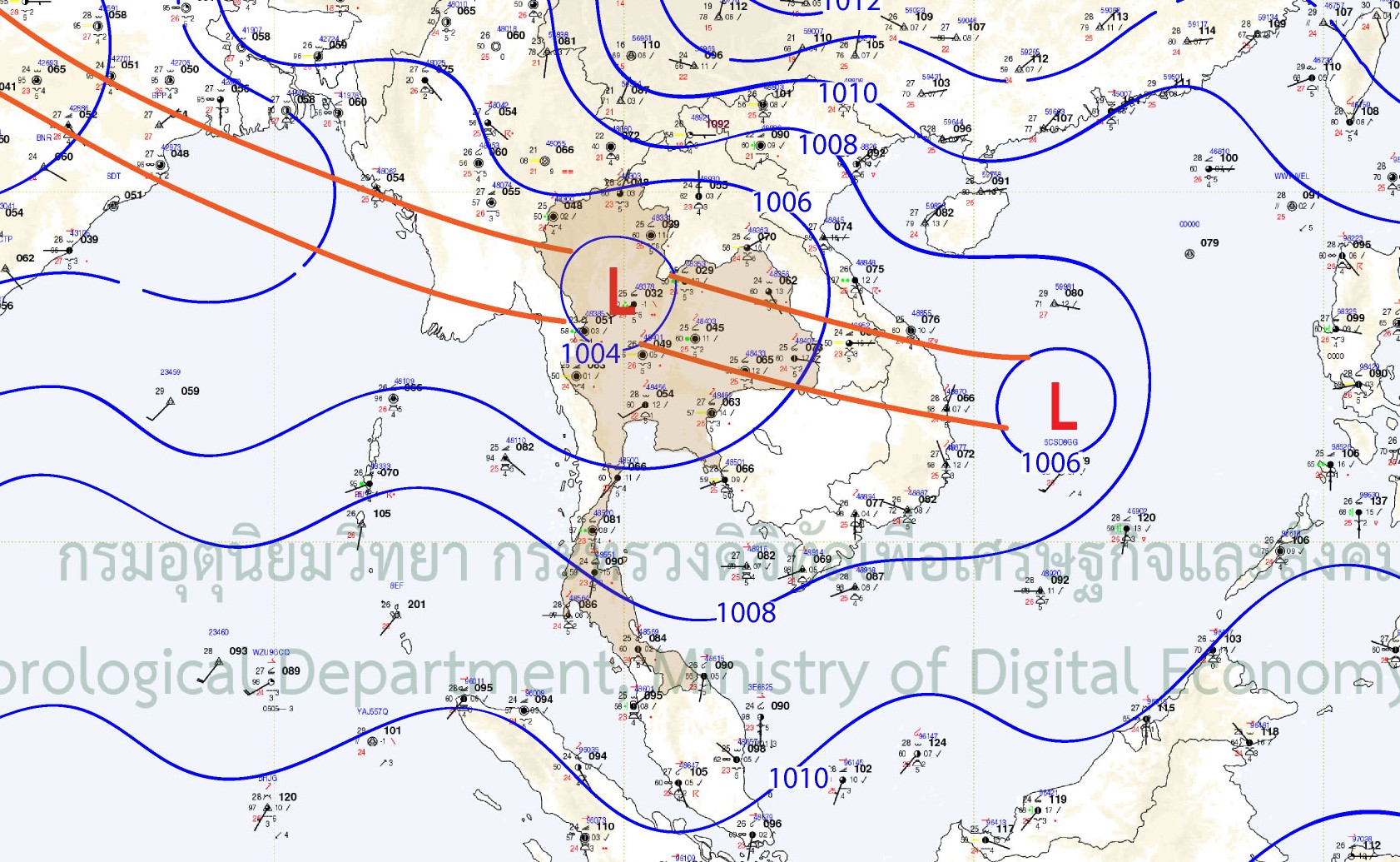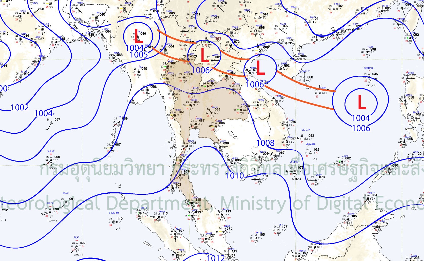 The monsoon trough continuously lay across the North and the Northeast toward “NONGFA” which had strengthened into Tropical Storm on 30 August 2025 that later decayed into low-pressure area on 31 August 2025. Nevertheless, the monsoon trough persistently lay across the North and the Northeast throughout September 2025. Furthermore, the influence of both storms also strengthened the southwest monsoon that resulted in the west side of the South, and the East experienced more rainfall.